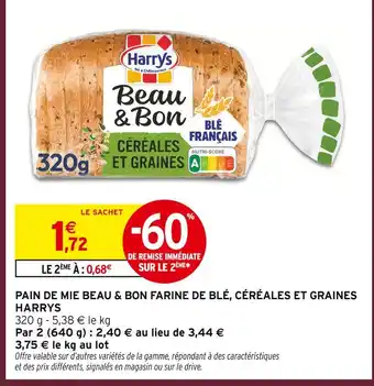 Harrys pain de mie beau & bon farine de blé, céréales et graines offres et promotions en ligne chez Intermarché