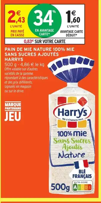 HARRYS Pain de mie nature 100% mie sans sucres ajoutés offres et promotions en ligne chez Intermarché