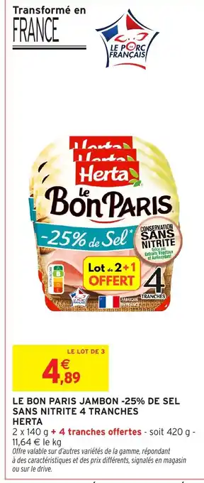HERTA Le bon paris jambon -25% de sel sans nitrite 4 tranches offres et promotions en ligne chez Intermarché