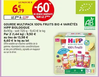 Hipp biologique gourde multipack 100% fruits bio 4 variétés offres et promotions en ligne chez Intermarché