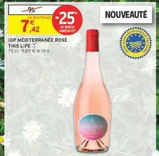 Actuellement en offre chez Intermarché : IGP MÉDITERRANÉE ROSÉ THIS LIFE ✅ Valable du 28-04 au 10-05.