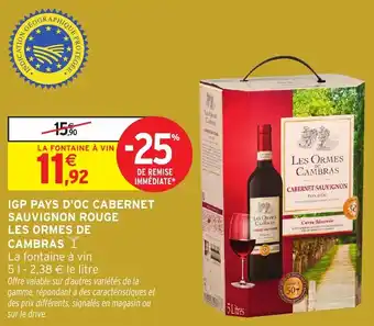 Igp pays d'oc cabernet sauvignon rouge les ormes de cambras : offres et promos Intermarché à découvrir