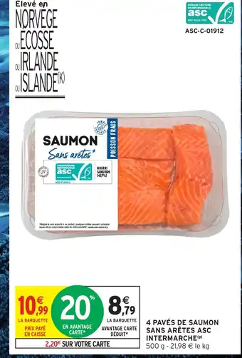 Actuellement en offre chez Intermarché : INTERMARCHE 4 pavés de saumon sans arêtes asc ✅ Valable du 10-02 au 22-02.