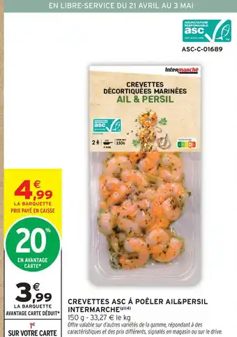 Actuellement en offre chez Intermarché : Intermarche crevettes asc à poêler ail & persil ✅ Valable du 21-04 au 3-05.