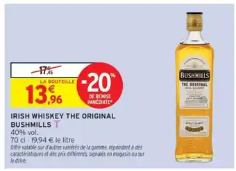IRISH WHISKEY THE ORIGINAL BUSHMILLS offres et promotions en ligne chez Intermarché