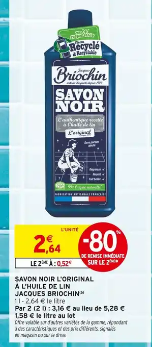 Actuellement en offre chez Intermarché : Jacques briochin savon noir l'original à l'huile de lin ✅ Valable du 30-12 au 11-01.