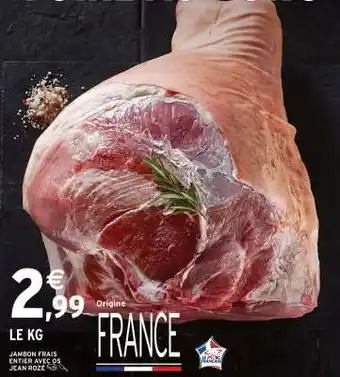 Actuellement en offre chez Intermarché : JAMBON FRAIS ENTIER AVEC OS JEAN ROZÉ ✅ Valable du 27-01 au 1-02.