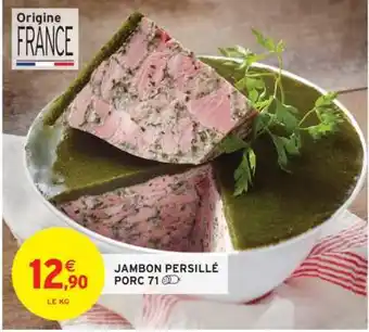 Actuellement en offre chez Intermarché : JAMBON PERSILLÉ PORC 71 ✅ Valable du 17-02 au 22-02.