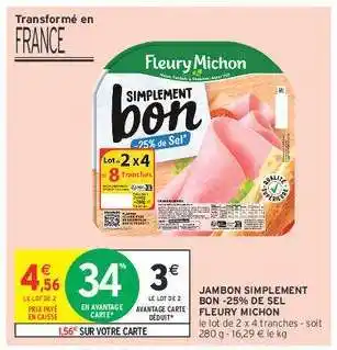 Jambon Simplement Bon -25% de Sel Fleury Michon : offres et promos Intermarché à découvrir
