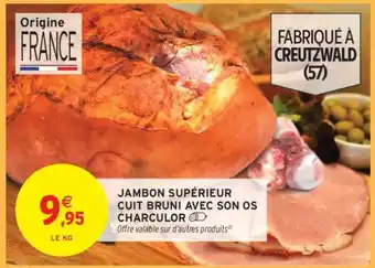 JAMBON SUPÉRIEUR CUIT BRUNI AVEC SON OS CHARCULOR offres et promotions en ligne chez Intermarché