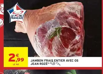 Actuellement en offre chez Intermarché : JEAN ROZÉ Jambon frais entier avec os ✅ Valable du 10-03 au 15-03.
