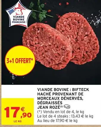 Y a-t-il une promotion sur Jean rozé viande bovine : bifteck haché provenant de morceaux dénervés, dégraissés la semaine prochaine chez Intermarché ?