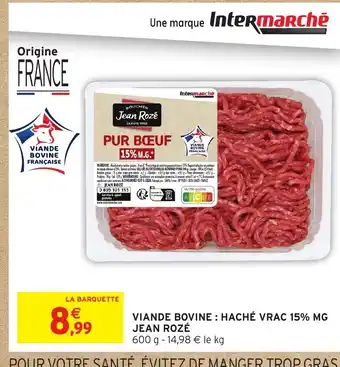 Offre JEAN ROZÉ Viande bovine: haché vrac 15% mg chez Intermarché