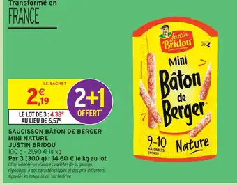Actuellement en offre chez Intermarché : Justin bridou mini bâton de berger nature ✅ Valable du 17-03 au 29-03.