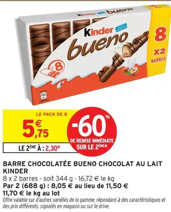Kinder barre chocolatée bueno chocolat au lait offres et promotions en ligne chez Intermarché