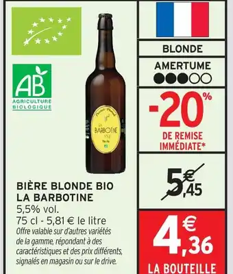 Actuellement en offre chez Intermarché : La barbotine bière blonde bio ✅ Valable du 28-04 au 10-05.
