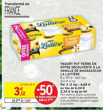 Actuellement en offre chez Intermarché : La laitière yaourt pot verre en offre découverte à la vanille de madagascar ✅ Valable du 3-02 au 15-02.