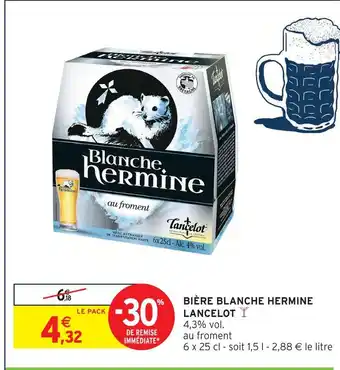 Actuellement en offre chez Intermarché : Lancelot bière blanche hermine ✅ Valable du 3-03 au 15-03.
