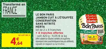 Le bon paris jambon cuit à l'étouffée conservation sans nitrite herta : offres et promos Intermarché à découvrir