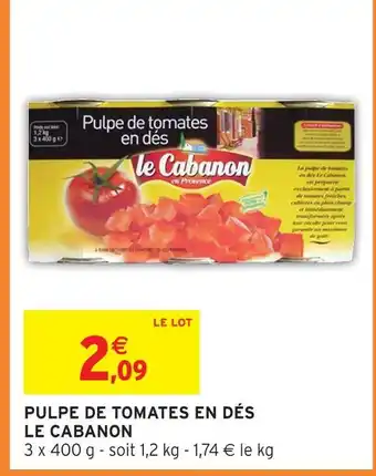 Le cabanon pulpe de tomates en dés offres et promotions en ligne chez Intermarché