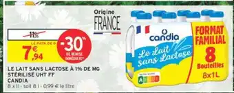 LE LAIT SANS LACTOSE À 1% DE MG STÉRILISÉ UHT FF CANDIA offres et promotions en ligne chez Intermarché