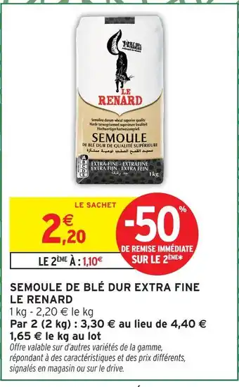 Offre Le renard semoule de blé dur extra fine chez Intermarché