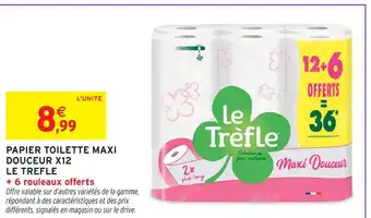 Offre Le trefle papier toilette maxi douceur x12 chez Intermarché