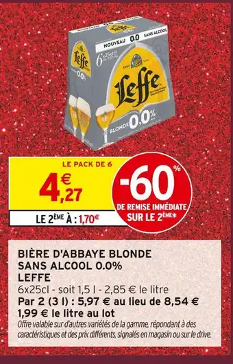 Actuellement en offre chez Intermarché : Leffe bière d'abbaye blonde sans alcool 0.0% ✅ Valable du 23-12 au 31-12.