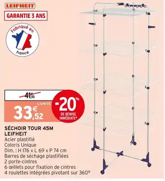 Leifheit séchoir tour 45m offres et promotions en ligne chez Intermarché