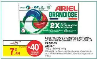Actuellement en offre chez Intermarché : LESSIVE PODS GRANDIOSE ORIGINAL ACTION DÉTACHANTE ET ANTI-ODEUR 21 DOSES ✅ Valable du 28-04 au 10-05.