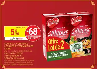 Actuellement en offre chez Intermarché : LIEBIG Soupe à la chinoise légumes et vermicelles ✅ Valable du 10-02 au 22-02.