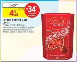 LINDOR CORNET LAIT LINDT : offres et promos Intermarché à découvrir