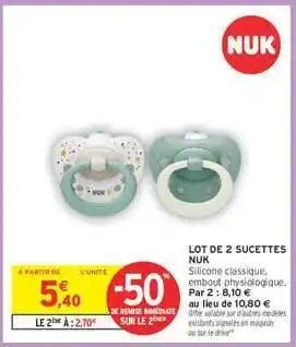 Lot de 2 Sucettes NUK offres et promotions en ligne chez Intermarché