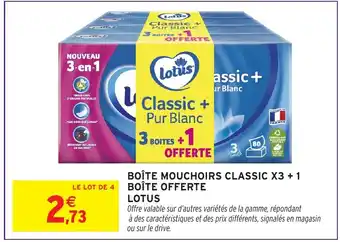 Offre LOTUS Boîte mouchoirs classic x3 +1 boîte offerte chez Intermarché