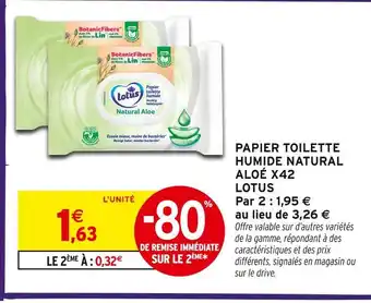 Offre Lotus papier toilette humide natural aloé x42 chez Intermarché