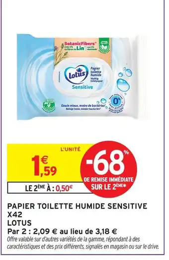 Offre Lotus papier toilette humide sensitive chez Intermarché