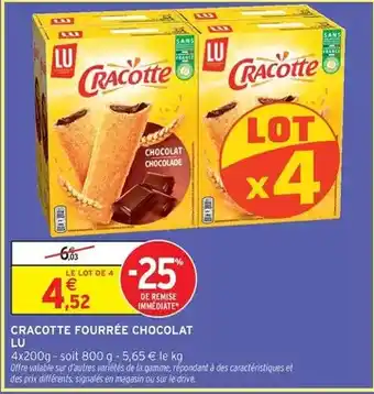 Offre Lu - cracotte fourrée chocolat chez Intermarché