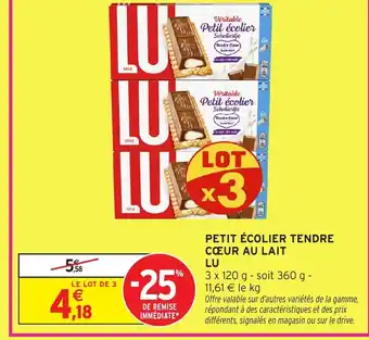 Offre LU Petit écolier tendre cœur au lait chez Intermarché