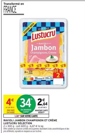 Lustucru - ravioli jambon champignon et crème : offres et promos Intermarché à découvrir