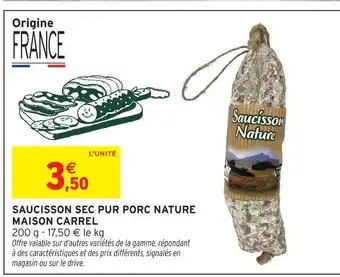 Offre Maison carrel saucisson sec pur porc nature chez Intermarché
