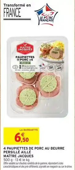 Actuellement en offre chez Intermarché : Maitre jacques - paupiettes de porc au beurre persillé ail e ✅ Valable du 23-12 au 31-12.
