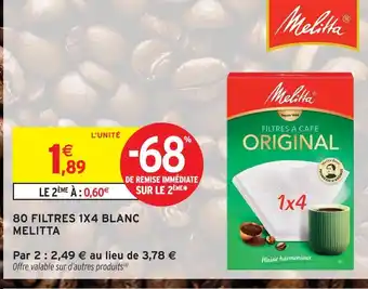 Offre Melitta 80 filtres 1x4 blanc chez Intermarché