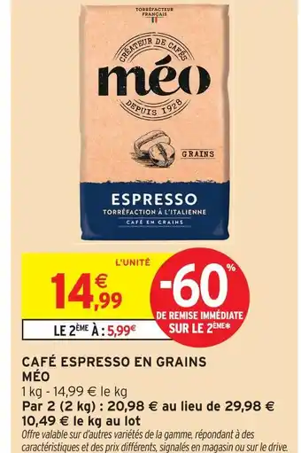 Méo café espresso en grains : offres et promos Intermarché à découvrir