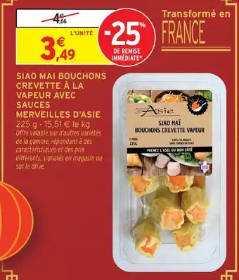 Actuellement en offre chez Intermarché : Merveilles d'asie siao maï bouchons crevette à la vapeur ✅ Valable du 10-02 au 22-02.