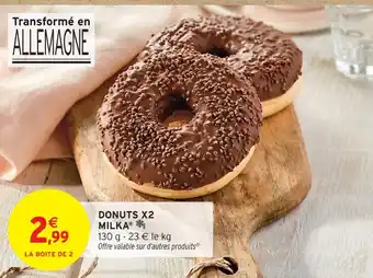 Actuellement en offre chez Intermarché : Milka donuts x2 ✅ Valable du 27-01 au 8-02.