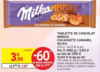 Offre Milka tablette de chocolat mmmax cacahuète caramel chez Intermarché