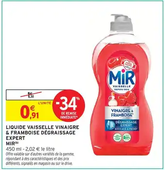 Mir liquide vaisselle vinaigre & framboise dégraissage expert offres et promotions en ligne chez Intermarché