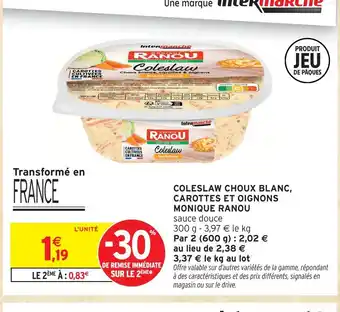 Actuellement en offre chez Intermarché : Monique ranou coleslaw choux blanc, carottes et oignons ✅ Valable du 17-03 au 29-03.