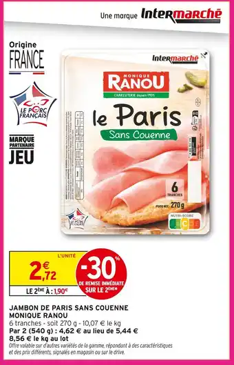 Actuellement en offre chez Intermarché : Monique ranou jambon de paris sans couenne ✅ Valable du 30-12 au 11-01.
