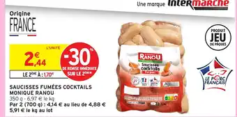Actuellement en offre chez Intermarché : MONIQUE RANOU Saucisses fumées cocktails ✅ Valable du 24-03 au 6-04.